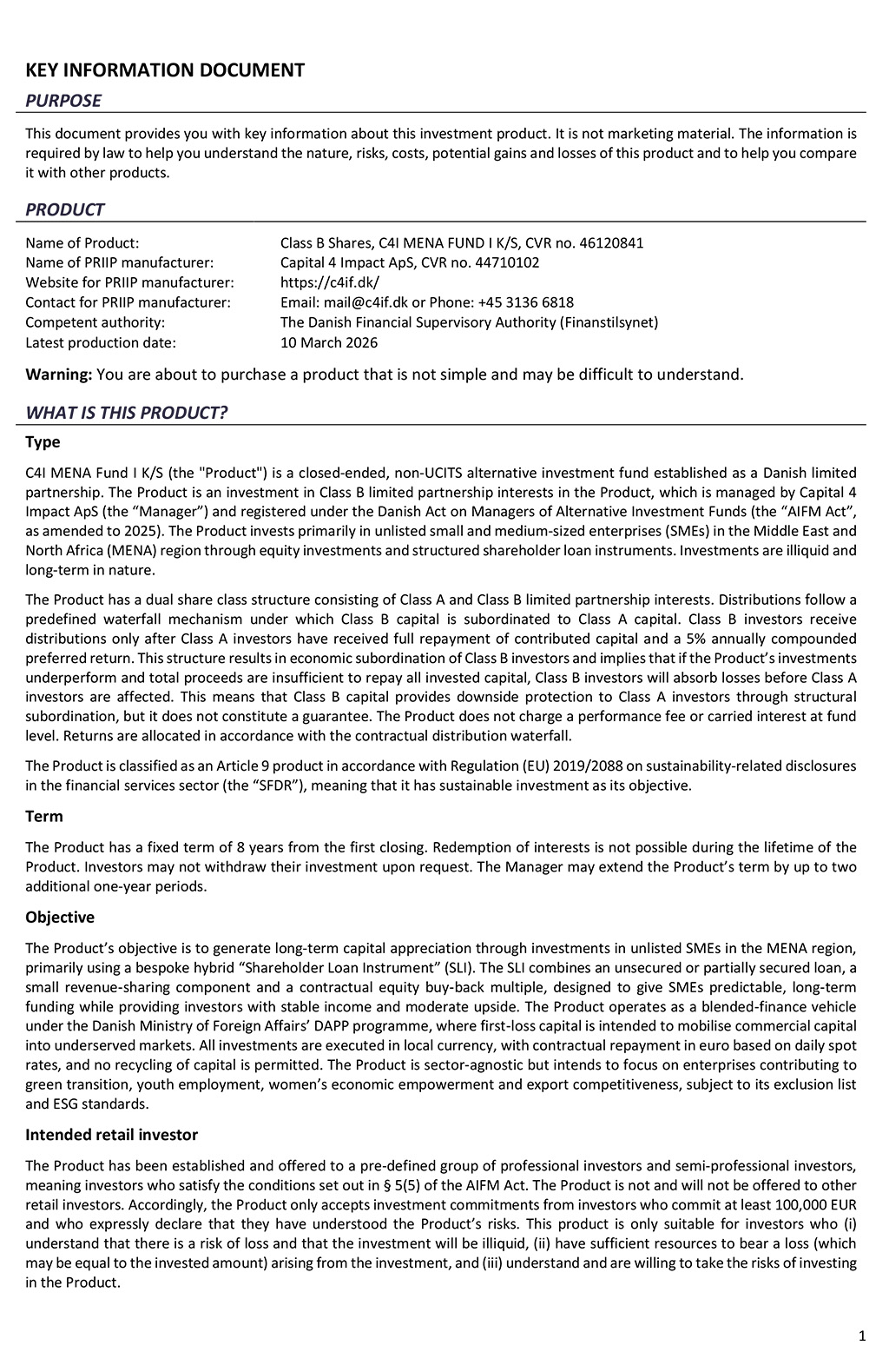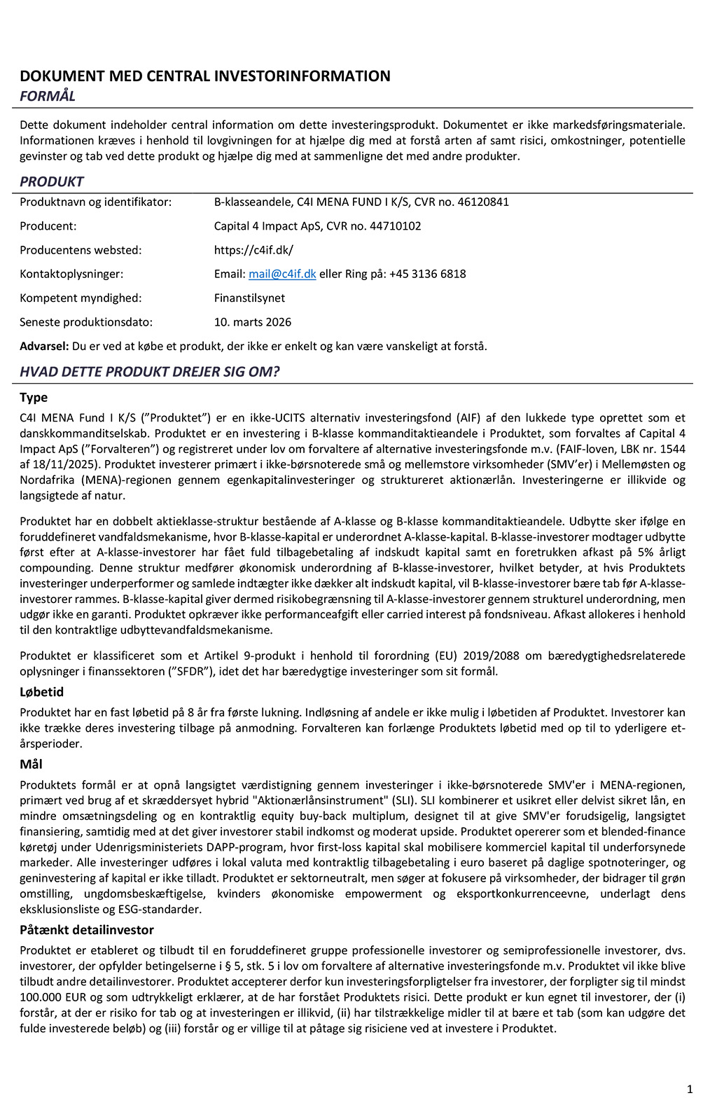 KID PRIIP_ C4I MENA FUND I (Dansk)